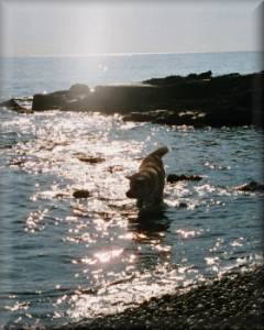 Er stellt sich über einen Sonnenanbeter, vorzugsweise eine Frau (der Lümmel hat guten Geschmack, er wählt immer Damen mit der besten Figur!). So eine Person spürt plötzlich einen Schatten über sich oder merkt Bärchens Atem, macht die Augen auf und sieht direkt über sich eine bedrohliche Riesenschnauze, womöglich noch etwas sabbernde… Wer behauptet, Frauen wären schlechte Autofahrer? Die von mir beobachtete Reaktionszeit der Damen ist atemberaubend, sie verschwinden augenblicklich, zur größten Zufriedenheit von Bärchen – ein trockenes Strandtuch ist da! Die Erklärungsnot des Herrchens ist aber noch größer… Ajajajajjjj!