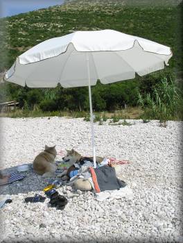 Man nimmt alle Reisestrapazen auf sich um unter anderen etwas Sonne auf dem Strand und warmes Meereswasser zu genießen. Aber ohne Akita – kein Vergnügen!