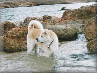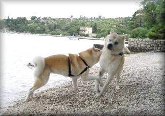 Akitas liebstes Menü am Mittelmeer- zarte Lammknochen mit viel Fleisch. Nachteil dieser Fütterung – die Akitas verzichten hartnäckig auf das Biofutter und wollen unbedingt jedes bemerkte Restaurant leer plündern! Und einen Akita davon abzuhalten, was er sich gerade in den sturen Kopf gesetzt hat, ist bekanntermaßen mehr als schwierig.