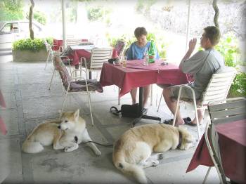 Altersunabhängig motzen einige Kinder (im Gegenteil zu Akitas): „Ich hab´ Hunger, das wisst ihr ja seit zwei Stunden!“ Es bleibt also nichts anderes übrig nur ein Restaurant aufzusuchen. Als erstes Gebot gilt: auf Akita hören! Zeigen die beiden Unzufriedenheit mit einem Restaurant bevor man einen Tisch besetzt, soll man schleunigst verschwinden. Ich habe den Fehler (das meckernde Kind war schuld!) nur einmal gemacht und nie wieder. Die Speisen waren grausam, hungrige Akitas wollten sie nicht mal beschnuppern, geschweige denn essen.